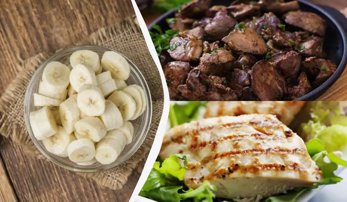 Een portie runderlever of kipfilet heeft meer vitamine B6 dan één banaan / collage My, foto door depositphotos.com