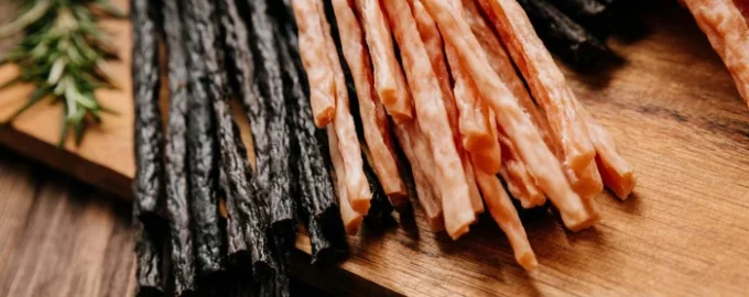 Foto: uit open bronnen Jerky en vleesstaafjes bevatten veel eiwitten Meat sticks en jerky zijn populaire snacks die gewaardeerd worden om hun hoge eiwitgehalte en gemak.