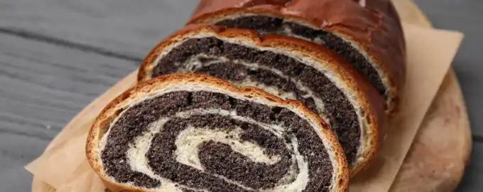 Zelfgemaakte maanzaadrol met gistdeeg – stap-voor-stap recept voor feestelijk bakken. Maanzaadrol met gistdeeg voor een feestelijke tafel / depositphotos.